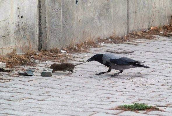Tokat’ta kargaların fare ile mücadelesi objektiflere yansıdı. Fotoğraf: Nurhan İçmez