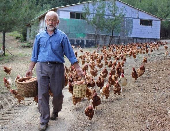 Bursa’da tekstil işinden emekli olduktan sonra organik yumurta işine giren vatandaşın baktığı tavuklar peşinden koşuyor. Fotoğraf: Burak Türker